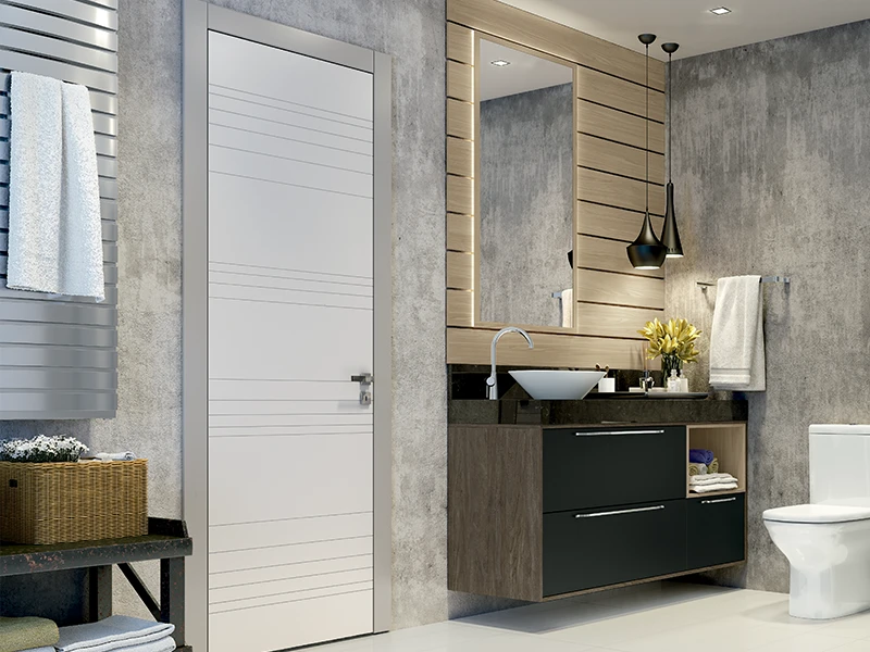 Além disso, os espelhos também podem ser grandes aliados para “ampliar” o espaço no banheiro, por isso não deixe de optar pelos modelos com superfícies grandes e lisas. Já em relação ao box, a melhor opção para economizar espaço são as portas de correr com vidro transparente, que não precisam ser abertas e também ampliam o alcance visual de toda a área do banheiro.