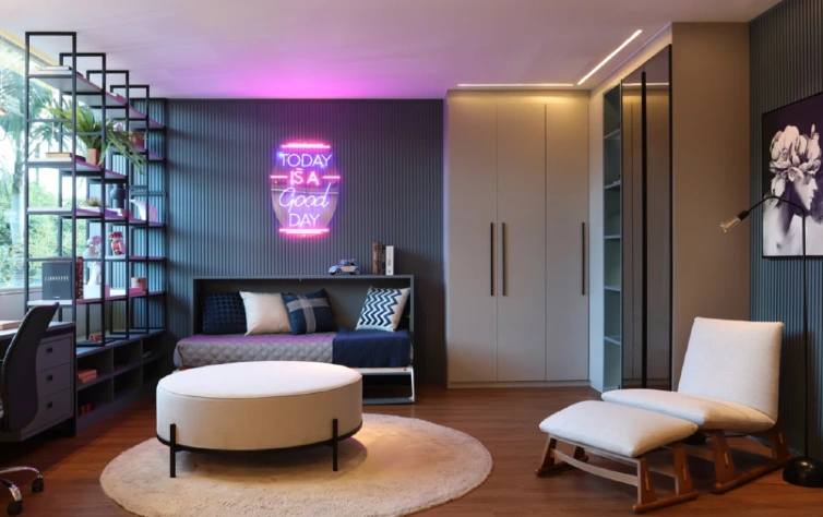 As cores neutras como cinza, bege e tons pastel continuam em alta, assim como acabamentos foscos e texturizados que trazem uma sensação de modernidade e sofisticação ao dormitório.